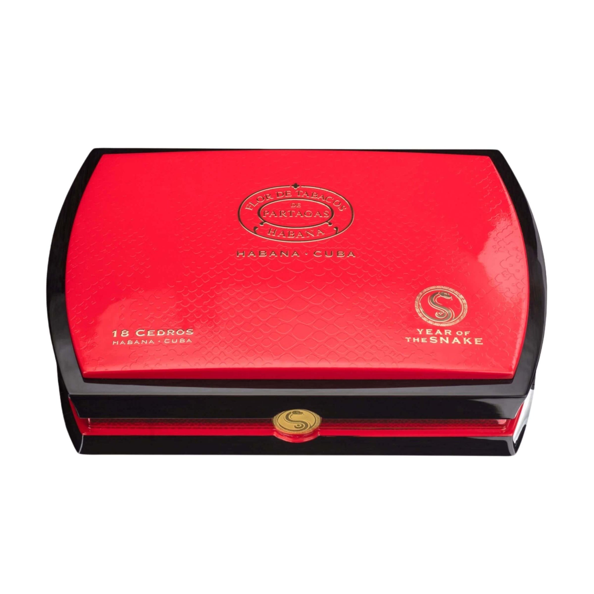 The Partagas Cedros Year of the Snake is a limited edition release created to honor the Chinese Zodiac, specifically the Year of the Snake. This celebratory cigar combines the bold character of Partagas with elegant presentation, featuring cedar‑wrapped cigars housed in beautifully designed boxes of 18. The vitola offers a slender yet refined format, making it ideal for those who enjoy a longer, nuanced smoking experience. With its symbolic packaging and premium construction, the Cedros Year of the Snake stands out as both a collector’s item and a memorable smoke for aficionados.
